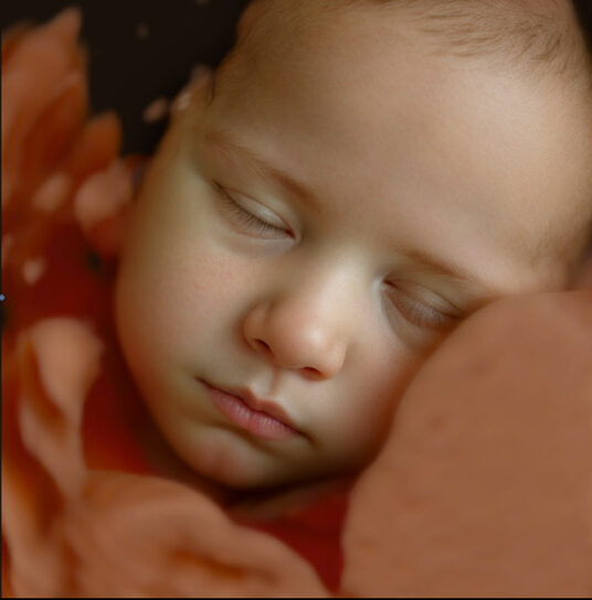 Experimenta la última tecnología hiperrealista 8K, una imagen increíblemente detallada y realista de los rasgos de tu bebé, con una textura y definición que te sorprenderán.
